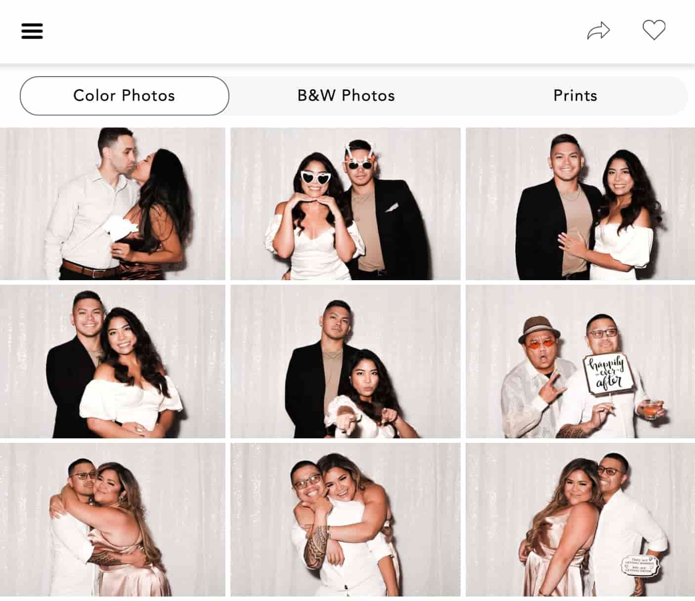 Our Glam Filter delivers a refined black-and-white finish with subtle skin smoothing. It enhances features without looking artificial or over-edited. The result is timeless, magazine-worthy portraits guests love.